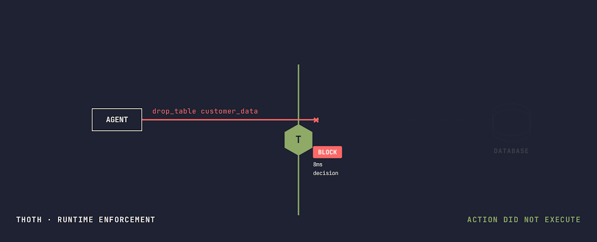 When an AI agent goes off-script, Thoth blocks the action before it executes.