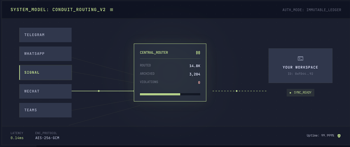 Cross-platform communications security. Bridges Slack to Telegram, WhatsApp, Signal, WeChat, and Teams with compliance archiving and behavioral monitoring on every message.